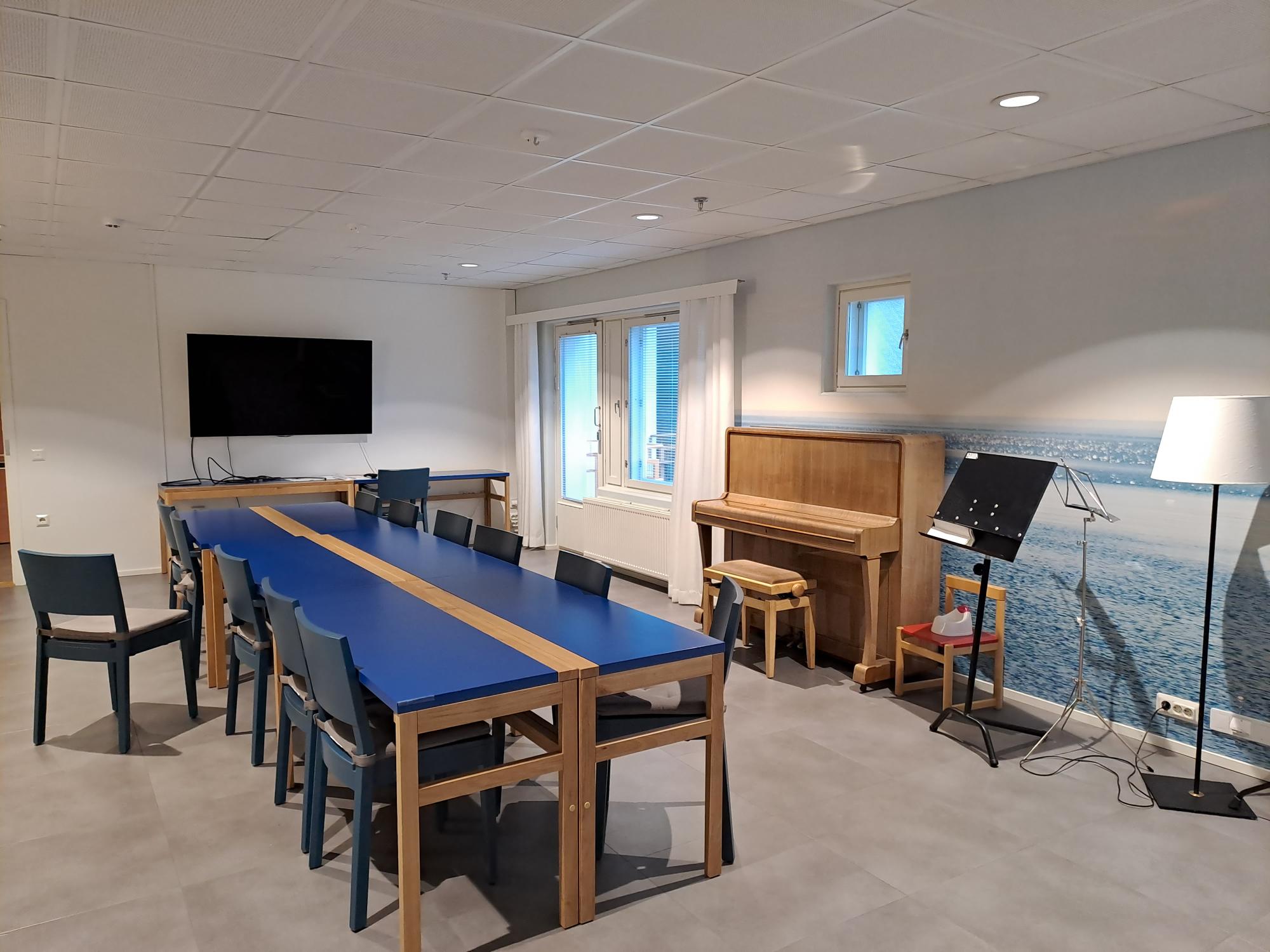 Kokoustekniikka: AV tekniikka hdmi-kaapeliyhteydellä, iso näyttö, fläppitaulu + tussit, wifi