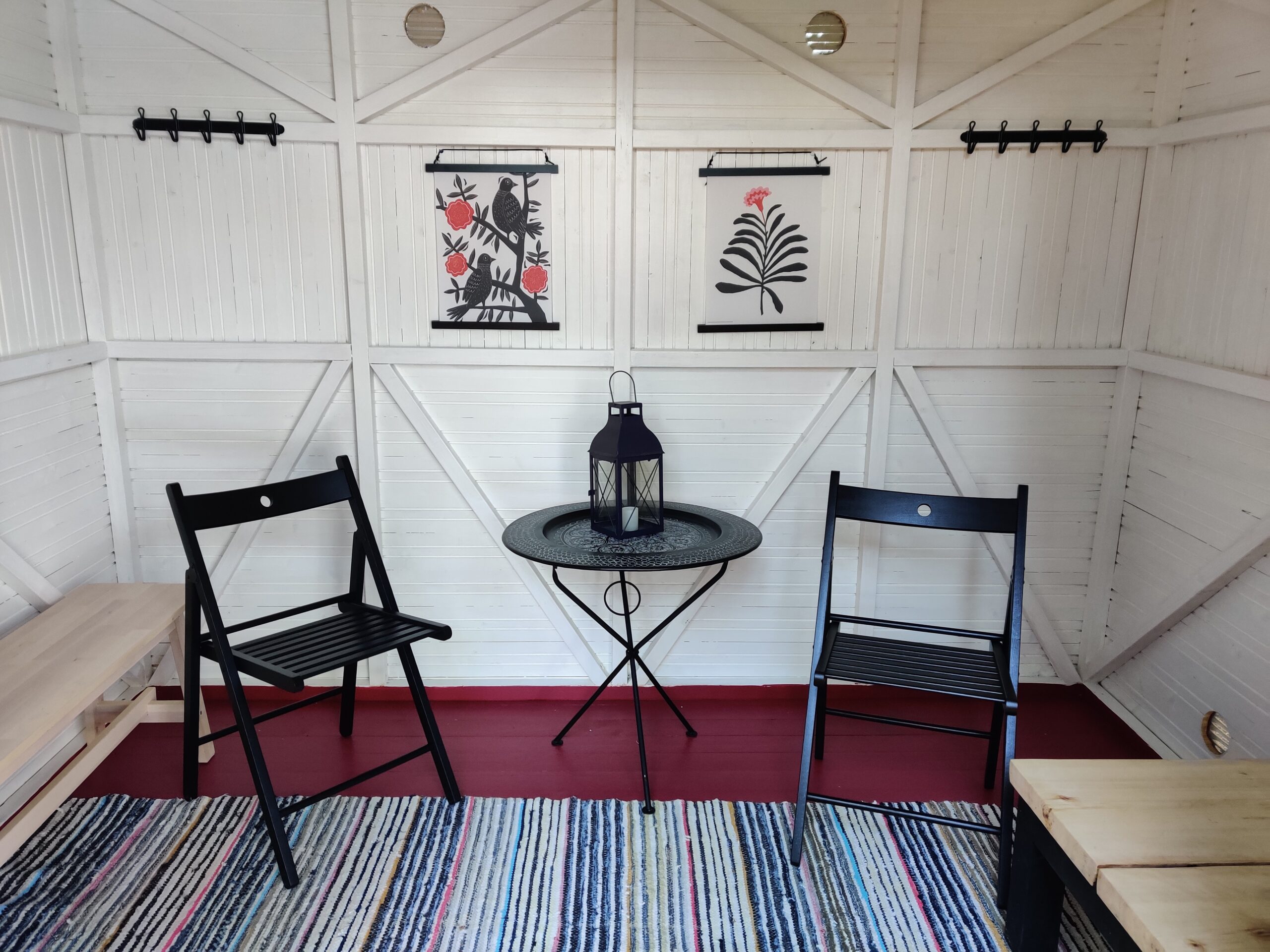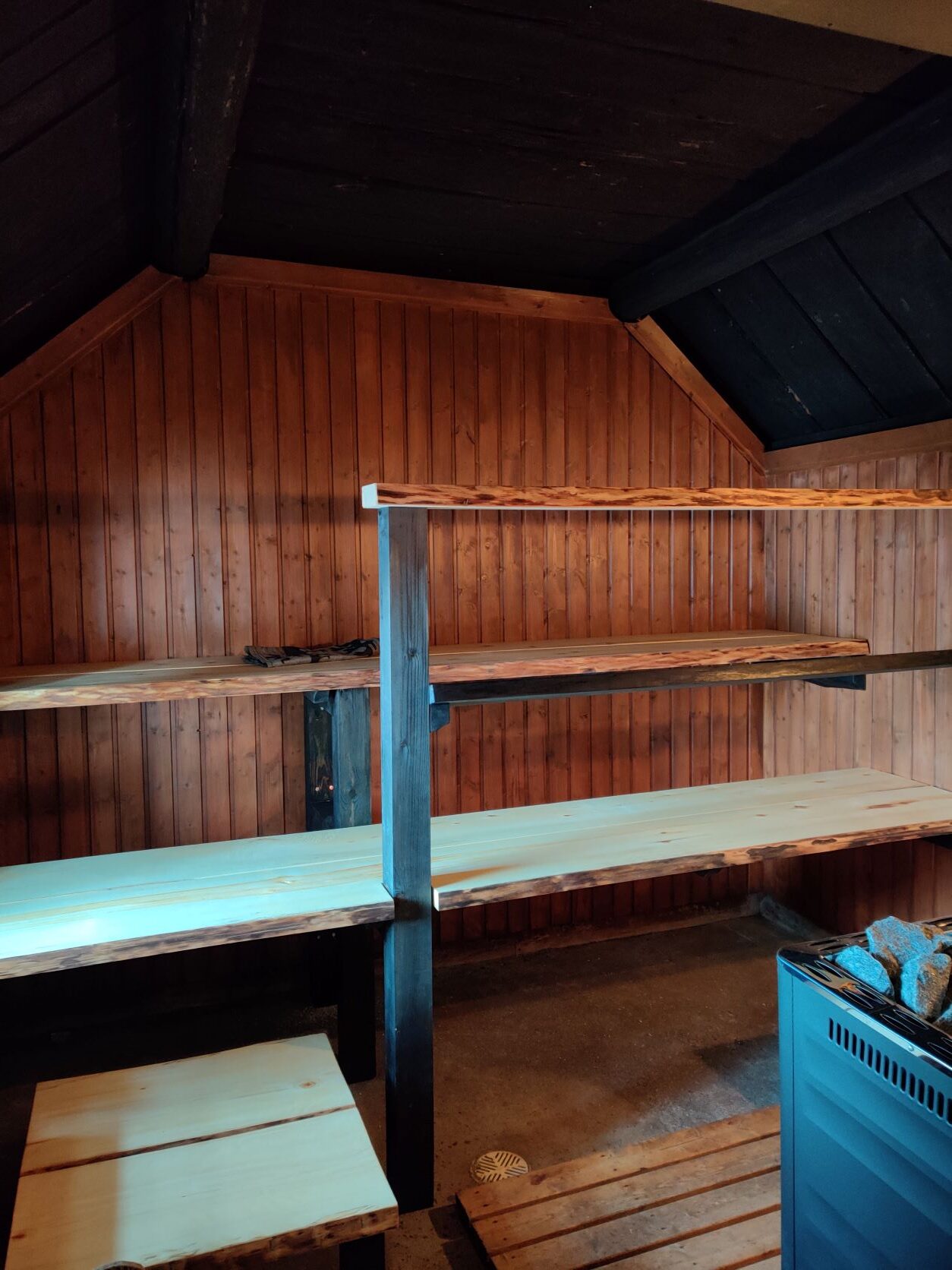 Sauna – saunomiseen ja peseytymiseen. Uintimahdollisuus järvessä, talvella avantouintimahdollisuus. Saunan eteistila toimii pukuhuoneena